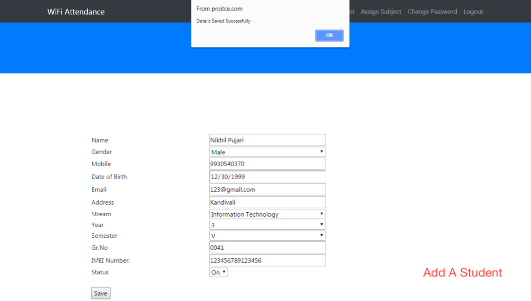 This an attendance system that takes the help of the concept of geofencing using a wifi hotspot. Everyone connected to the same hotspot network is marked present.