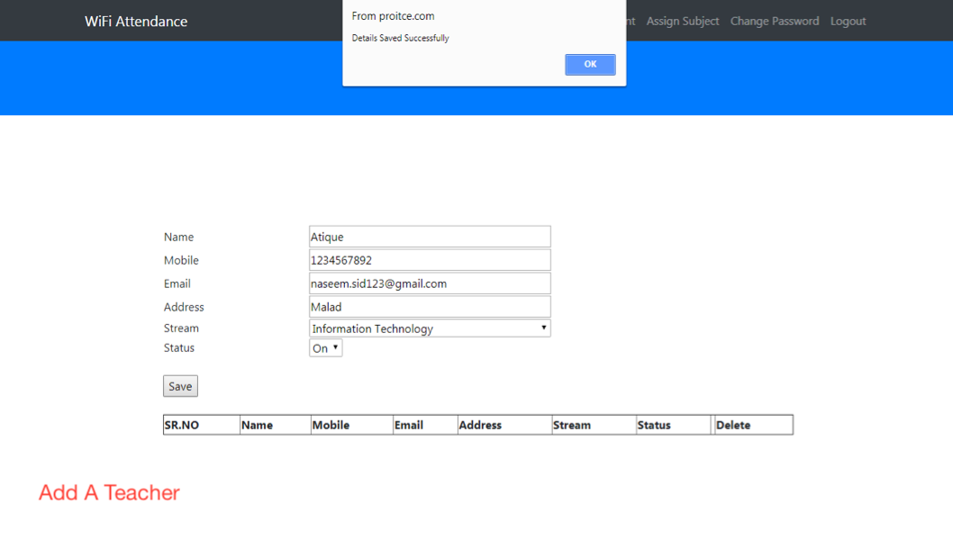 Working - It has 2 android mobile applications, one is for the student and the other is for the faculty. First, the teacher gets connected to a wifi network(or could also create his/her own mobile hotspot) and asks the students to do the same. The teacher then starts a session using the mobile app and all those students (connected to the same network and using the student app) are marked present in the database. A soon as the teacher ends the session device connected after that could be considered for the attendance.